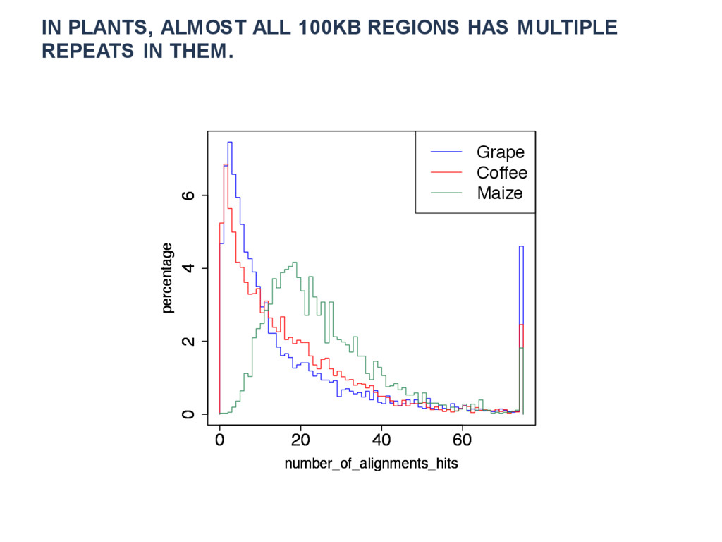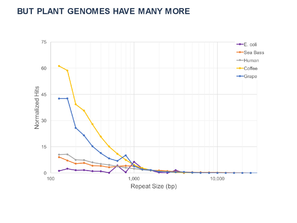 For a perfect assembler and at a high coverage, the contiguity of the assembly at a finite read length is limited by repetitive sequences. We study the limit imposed by repeat structures in plants, and contrast it to human, as the read length is increased. We started with assembled contigs from long reads and perform an all-against-all alignment. Non- unique regions of the contigs define repeats. We compare the repetitive sequences in human, a fish and several plants including coffee, grape and maize. We show the tendency of repeats to cluster in several plant genomes. Clustered repeats are especially difficult to assemble from short reads because even when all short reads are identified to be from the same 100 kb region, they are still repetitive in the repeat-cluster.