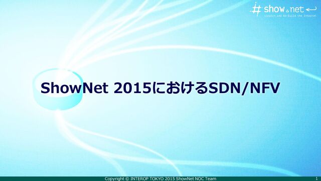 analysis Firewall DDoSミチゲータ vCPE (NAT/ToS) SDN/NFV概要 • ユーザごとにサービスチェインを選択 • vCPEでパケットにマーキング • 各サービスをToSの各bitに埋め込む • OpenFlowでVNFへ入れるか判断 • ToSの特定bitをチェック • 1ならVNFへ、0なら迂回 • 1つの機能(VNF)を複数のVAで構築 • OpenFlowでトラフィックを複数VAへ分散 • 送信元アドレスをハッシュしてパケットを いれるVAを決定 OpenFlow Switch OpenFlow Switch OpenFlow Switch OpenFlow Switch