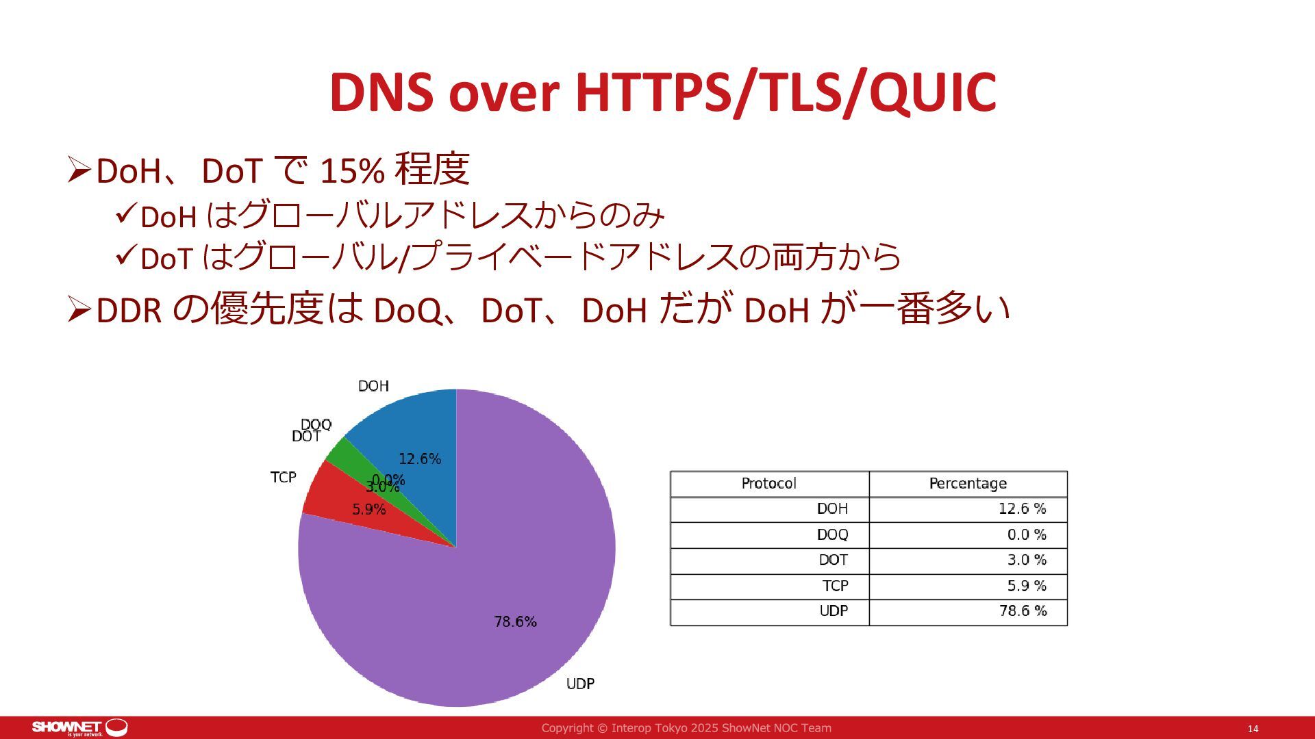 9. DNS over HTTPS/TLS/QUIC ➢DoH、DoT で 15% 程度 ✓DoH はグローバルアドレスからのみ ✓DoT