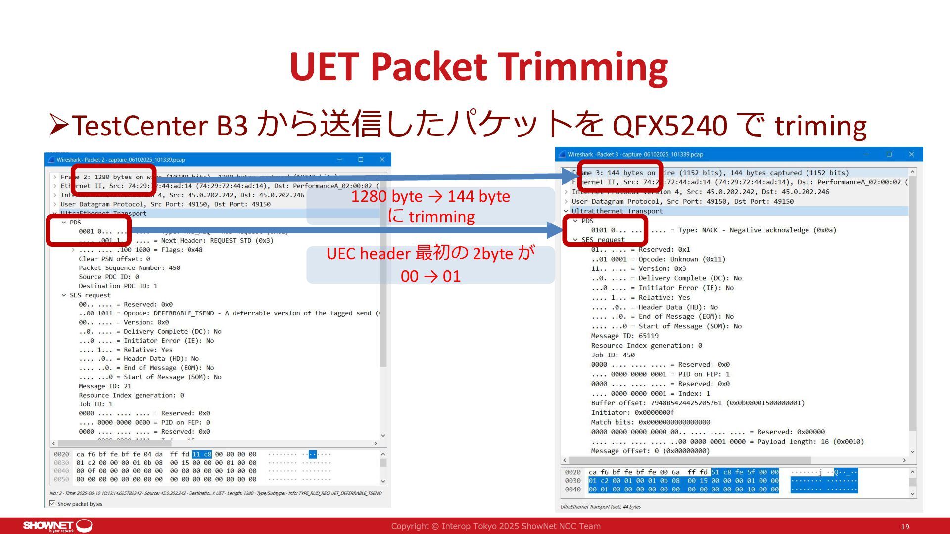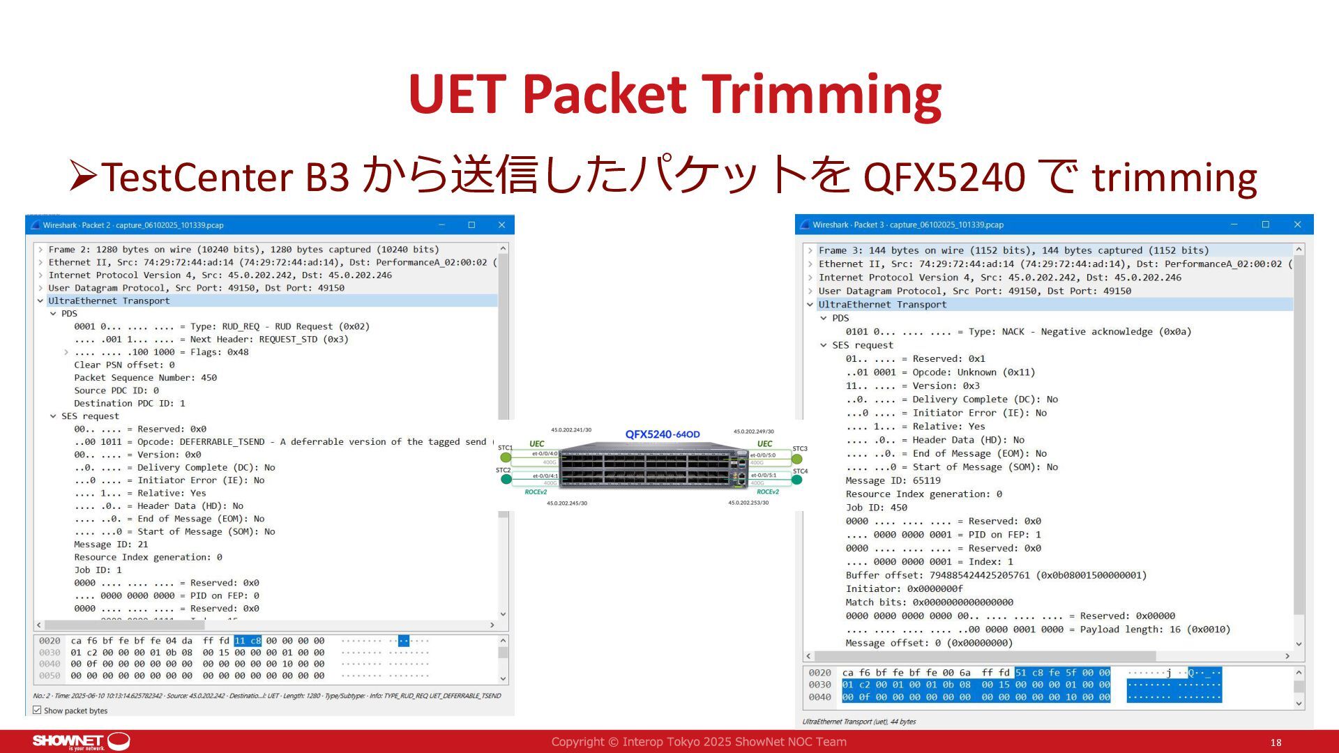 & RoCEv2 coexistence ➢UET Packet Trimming (TBC) Ultra Ethernet 相互接続試験 17