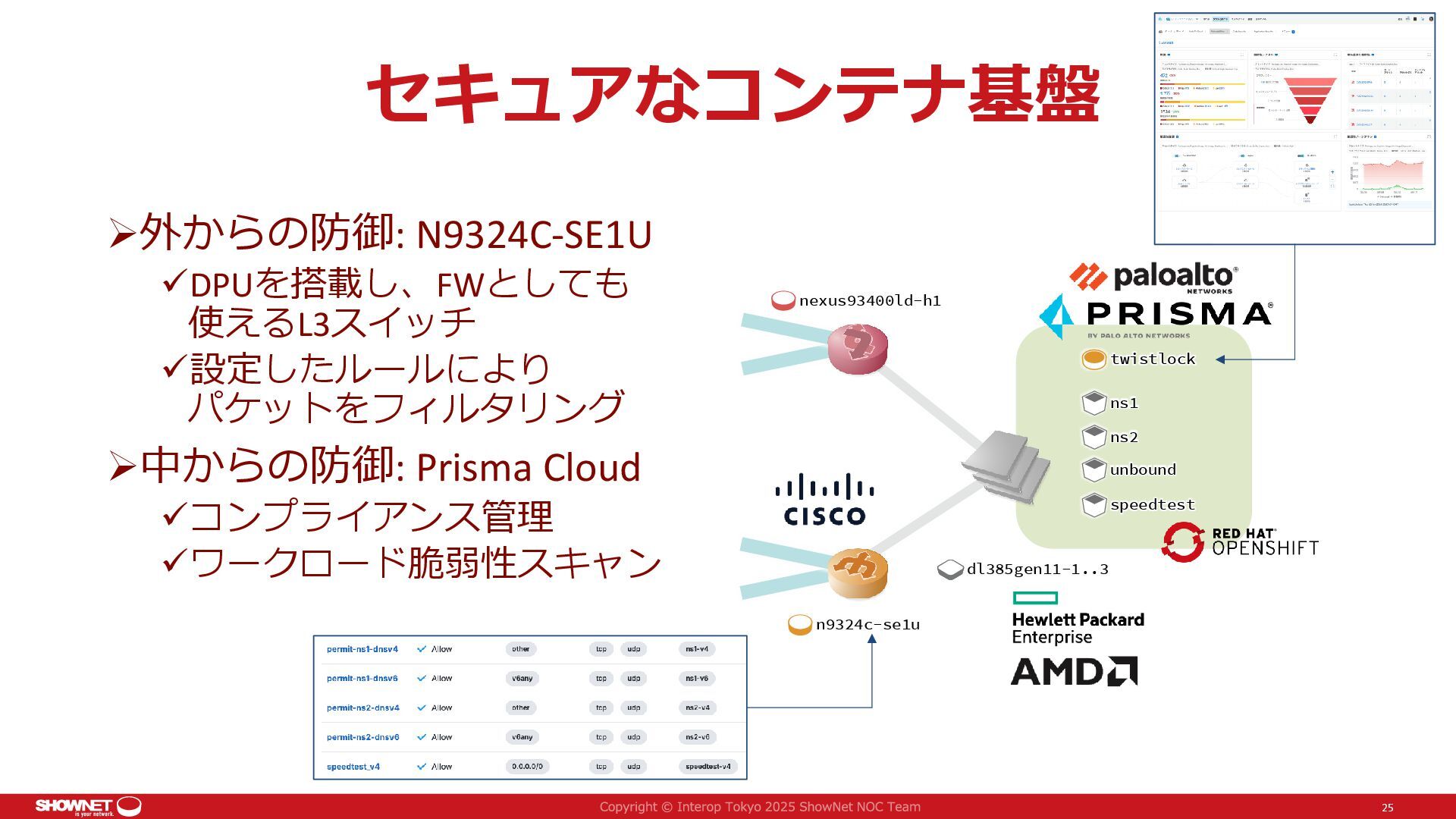 ✓コンプライアンス管理 ✓ワークロード脆弱性スキャン 25 n9324c-se1u dl385gen11-1..3 nexus93400ld-h1 ns1 twistlock ns2 unbound speedtest