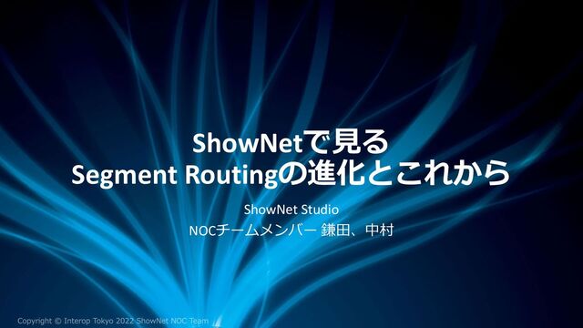ShowNetで見る Segment Routingの進化とこれから ShowNet Studio NOCチームメンバー 鎌田、中村