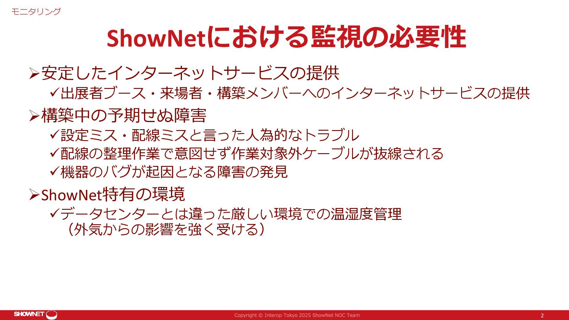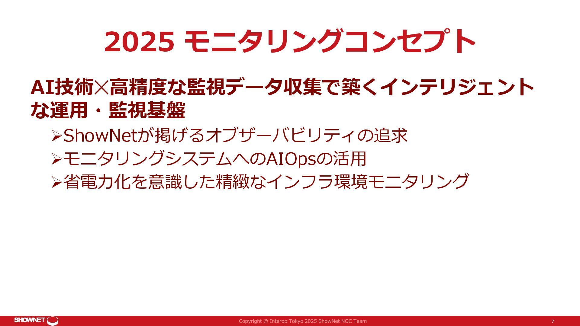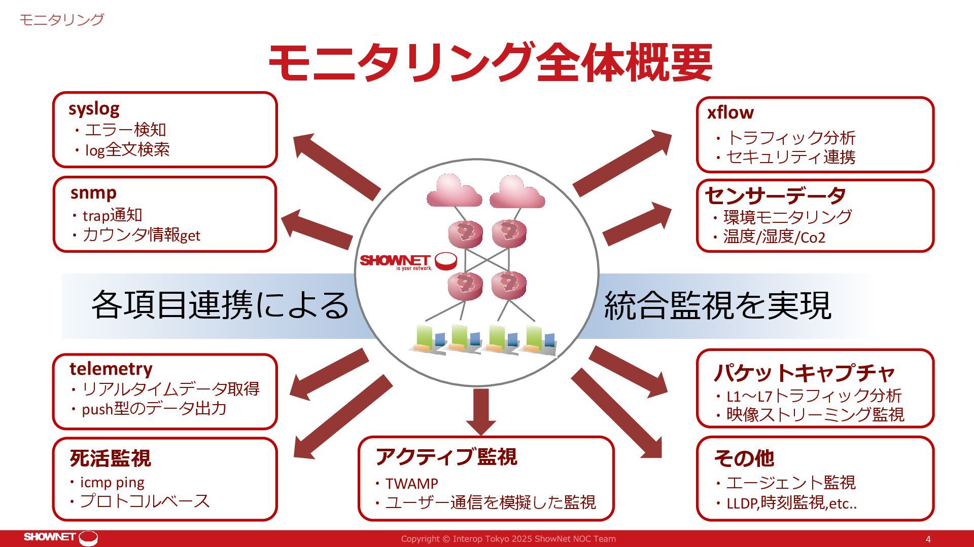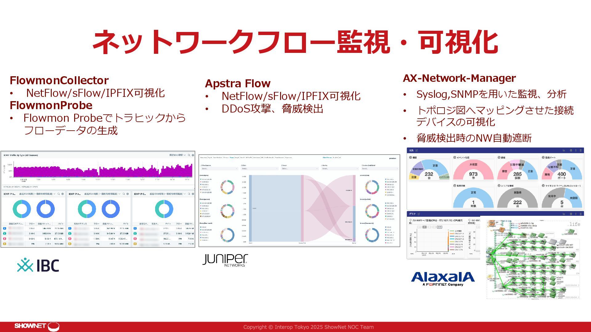 本セッションでは、ShowNet 2025の監視システムのコンセプトと構築過程、そして監視運用で可視化した結果をご紹介します。