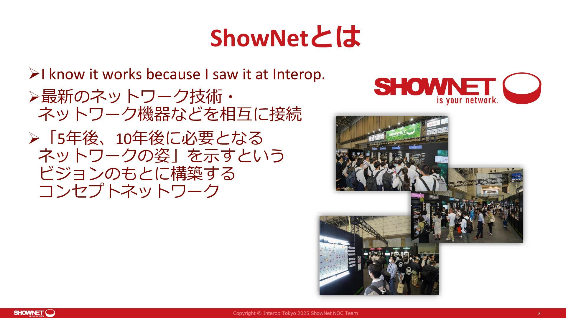 2025年のShowNet も無事に完遂することができました。今年は、ShowNet is your Networkというテーマを掲げ、皆様のネットワークの中でいかに活用していただけるテクノロジーをお届けできるかというようなテーマを掲げました。様々なテクノロジーのアップデートを是非会場で聞いて、さらに貴方のネットワークの糧になればと思っております。