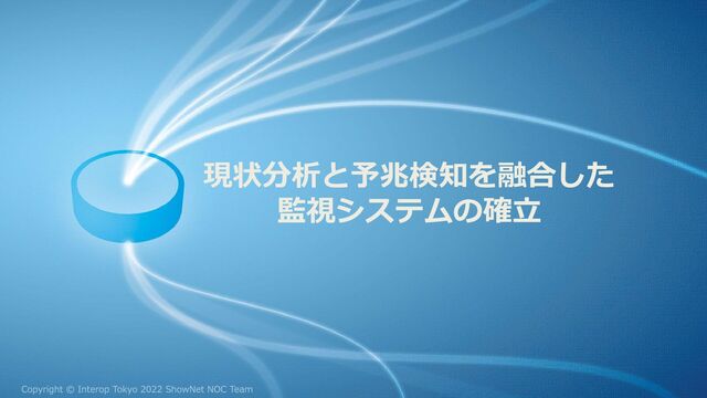 2022年からの挑戦 現状分析と予兆検知を融合した監視システムの確立 現状分析 xFlow,SNMP,Syslog 詳細分析 パケット解析 経路解析 エージェントベース監視 フィードフォワード 障害予測