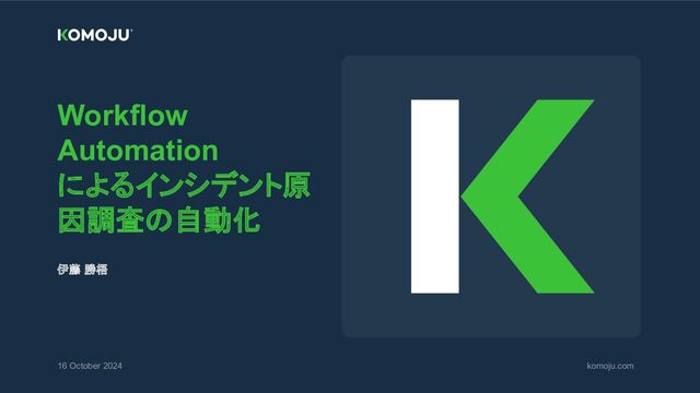 Workflow Automation によるインシデント原 因調査 自動化 伊藤 勝梧 16 October 2024
