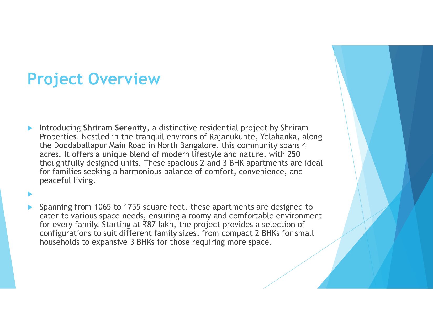 Shriram Serenity is thoughtfully crafted to deliver an ideal mix of comfort, modern living, and convenience. Its master and floor plans are meticulously designed to meet diverse family needs, providing ample space, functional layouts, and world-class amenities.