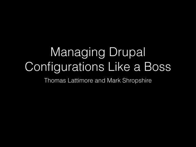Thomas Lattimore and Mark Shropshire talk through various methods of managing Drupal configuration data with Features, hook_update_N, and git. They dig into deploying these configurations between dev, testing, staging, and live environments. Finally, they discuss the CMI (Configuration Management Initiative) for Drupal 8 and how these changes will allow you to be the Drupal boss you have always wanted to be!