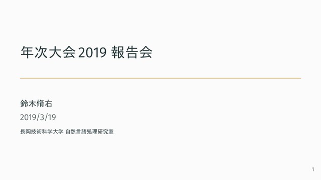 年次大会2019 報告会 鈴木脩右 2019/3/19 長岡技術科学大学 自然言語処理研究室 1