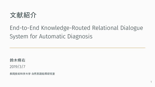文献紹介 End-to-End Knowledge-Routed Relational Dialogue System for Automatic Diagnosis 鈴木脩右