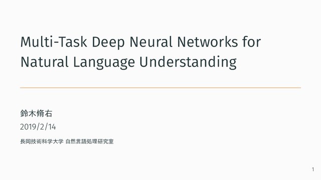 Multi-Task Deep Neural Networks for Natural Language Understanding 鈴木脩右 2019/2/14