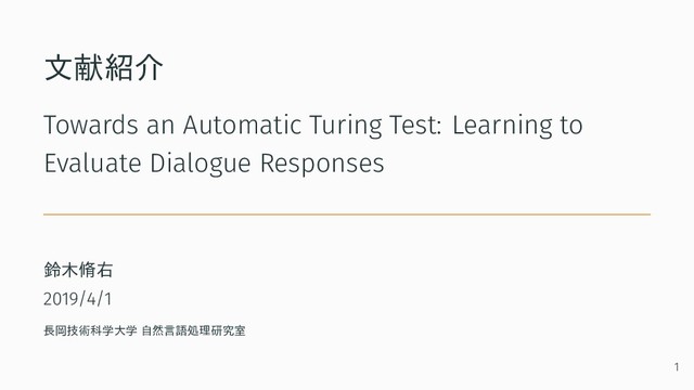 Angelard-Gontier, Yoshua Bengio, and Joelle Pineau. Towards an Automatic Turing Test: Learning to Evaluate Dialogue Responses. In Proceedings of the 55th Annual Meeting of the Association for Computational Linguistics (Volume 1: Long Papers), pages 1116–1126, Vancouver, Canada, July 2017. Association for Computational Linguistics. 2