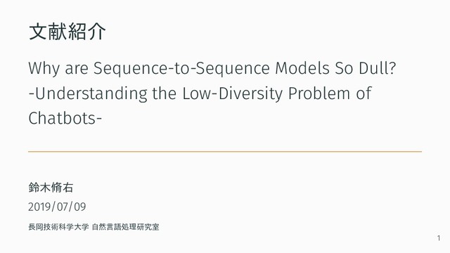 sequence-to-sequence models so dull? understanding the low-diversity problem of chatbots. In Proceedings of the 2018 EMNLP Workshop SCAI: The 2nd International Workshop on Search-Oriented Conversational AI, pages 81–86, Brussels, Belgium, October 2018. Association for Computational Linguistics. 2