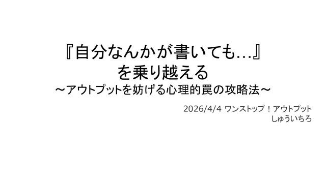 『自分なんかが書いても…』 を乗り越える 〜アウトプットを妨げる心理的罠の攻略法〜 2026/4/4 ワンストップ!アウトプット しゅういちろ