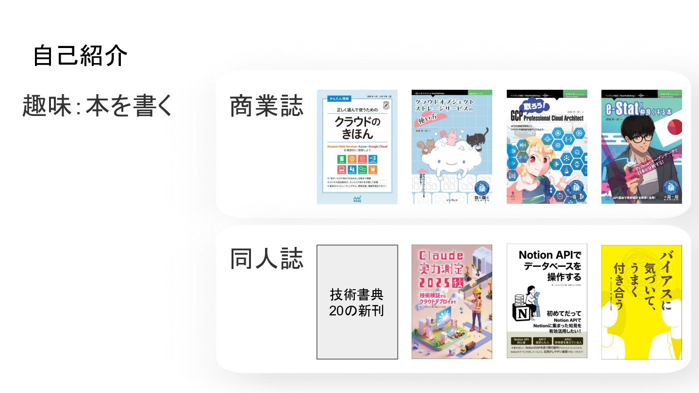 自己紹介 趣味:本を書く 商業誌 同人誌 技術書典 20の新刊