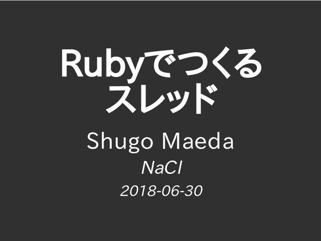 Rubyでつくる スレッド Shugo Maeda NaCl 2018-06-30