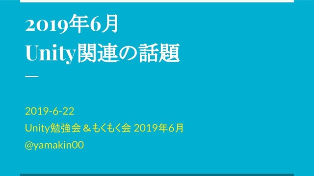 2019年6月 Unity関連の話題 2019-6-22 Unity勉強会&もくもく会 2019年6月 @yamakin00