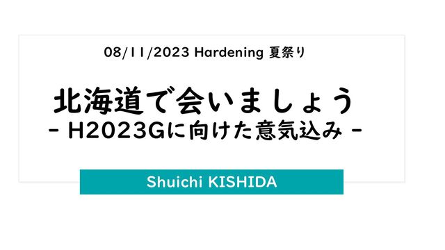 Hardening Summer Festival (Fan event) https://mokumokuhardening.connpass.com/event/292531/ 08/11/2023