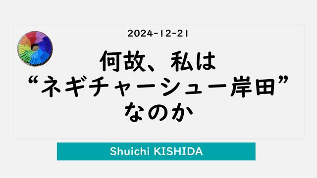「何故、私は『ネギチャーシュー岸田』なのか」を説明しているスライドです。