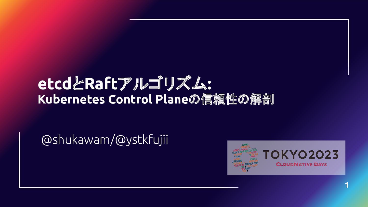 etcdとRaftアルゴリズム: Kubernetes Control Planeの信頼性の解剖 @shukawam/@ystkfujii 1
