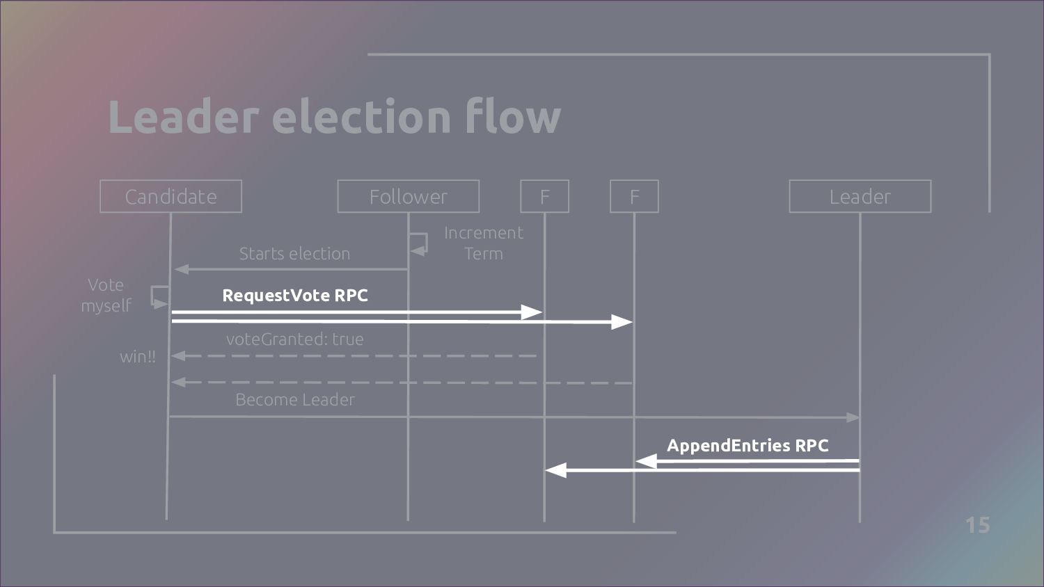 Leader election flow 14 Candidate Follower F F Leader RequestVote