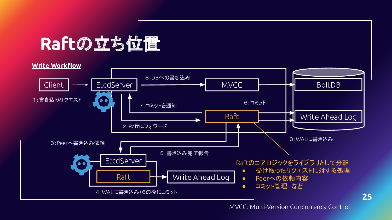 Raftの立ち位置 25 Client Write Workflow MVCC: Multi-Version Concurrency Control MVCC