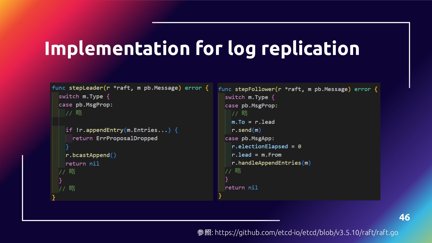 Implementation for log replication 46 参照: https://github.com/etcd-io/etcd/blob/v3.5.10/raft/raft.go