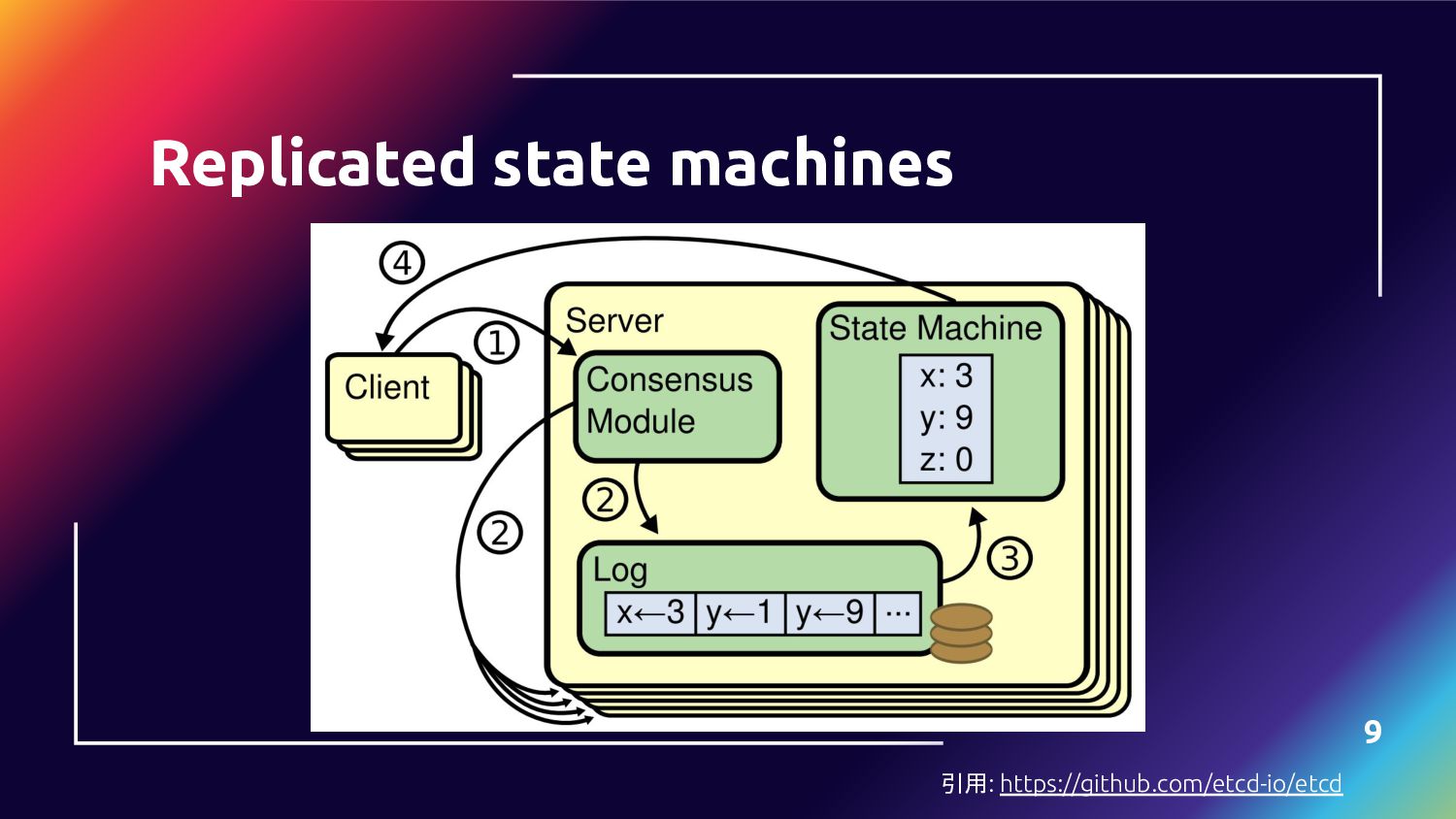9 引用: https://github.com/etcd-io/etcd Replicated state machines