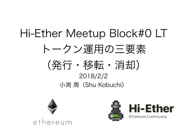 2018年2月2日Hi-Ether Meetup Block#0での「トークン運用の三要素(発行・移転・焼却)」のLT資料です。