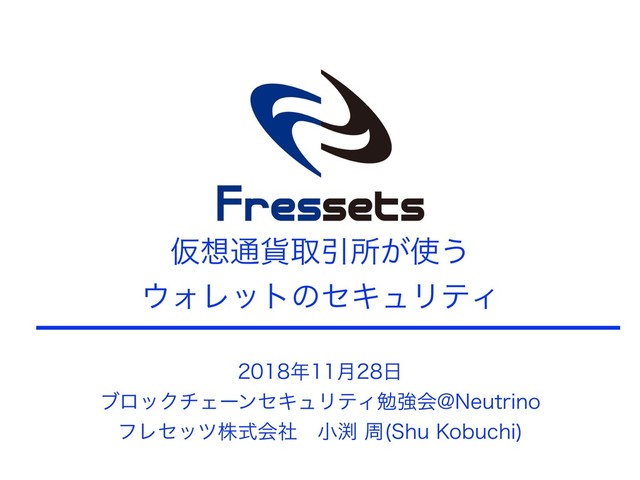 2018年11月28日(水)Neutrino Tokyoで行われたブロックチェーンサービスのセキュリティを考える part 3【ウォレット編】でFressetsの事例も交えながら事業者向けウォレットのセキュリティをご紹介させていただきました。 https://neutrino.connpass.com/event/106839/