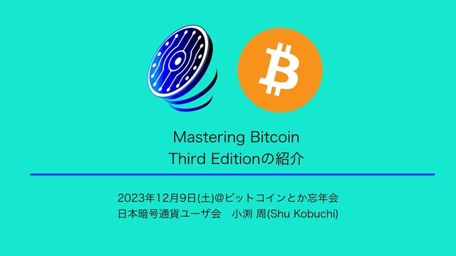 https://cryptocurrency.connpass.com/event/303416/ 2023年12月9日(土)ビットコインとか忘年会のLTで、同年11月に出版されたMastering Bitcoin Third Editionの紹介をしました。