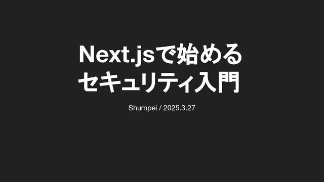 Next.jsで始める セキュリティ入門 Shumpei / 2025.3.27