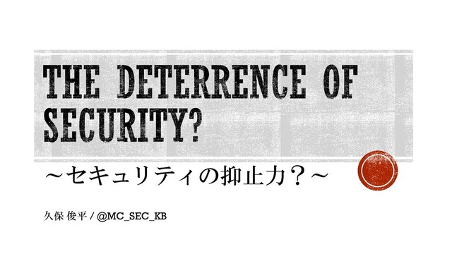 ~セキュリティの抑止力?~ 久保 俊平 / @MC_SEC_KB