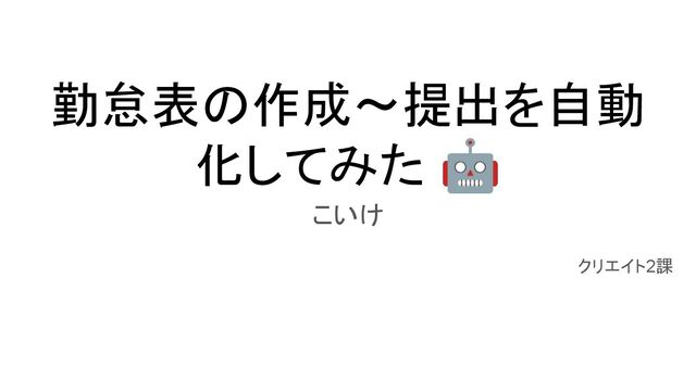 勤怠表の作成〜提出を自動 化してみた 🤖 こいけ クリエイト2課