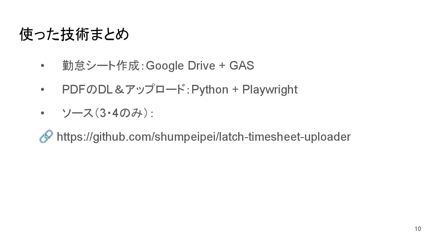 • ソース(3・4のみ): 🔗 https://github.com/shumpeipei/latch-timesheet-uploader 10