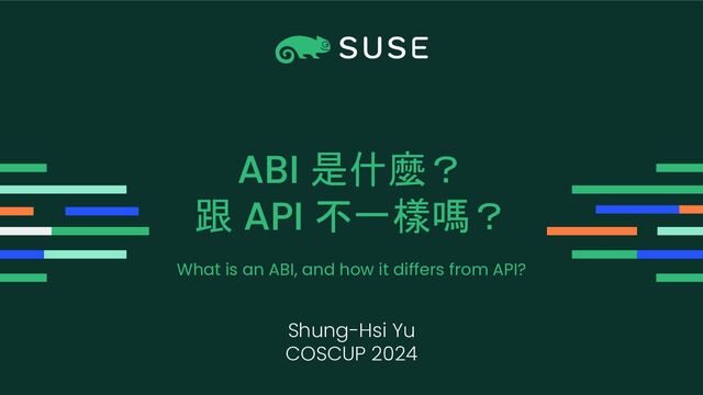 這次議程中我們會介紹到底什麼是 ABI、它跟 API 有什麼不同、討論 ABI 相容性及列出 ABI 不相容時會發生什麼事、還有舉出一些 ABI 的實例(Linux Kernel ABI、Python's stable ABI、Foreign Function Interface)。