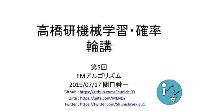 パラメータの対数尤度計算して,負担率のイメージも分かったけど 結局これは何? ‐ そういえば,さっきの対数尤度に潜在変数の話は 出てきてないような...? 2019/7/17 23 ( ) ( ) ( ) | , | , k n k k nk j n j j j N z N = x μ Σ x μ Σ これらを解決するために一般的な話をしなければなりません
