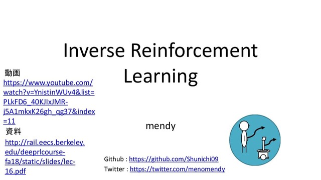 ) 1: 1: 1: , | , | , , | , t t T t t T t T p s a p a s p s = ( ) ( ) , t t t s a s = ( ) ( ) t t s s Backward Message Forward Message!! (詳細は前回スライド) ( ) ( ) ( ) ( ) ( ) 1: 1: 1: , | , | , , | , , t t T t t T t T t t t p s a p a s p s s a s = ( ) ( ) ( ) ( ) * 1: ~ | , ~ T p L E r E r = − ( ) ( ) ( ) 1 1 , , , T t t t t t t t t T t t t t s a r s a ds da r s a = = = ( ) ( ) ( ) , t t t t t s a s s 注意すべき点としては すべての状態と行動のペアにつ いてのμを計算するということ! 下の→はそれを意味しています。 (積分を行列に書き直している)