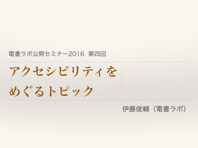 アクセシビリティを めぐるトピック - 電書ラボ公開セミナー2016 第四回