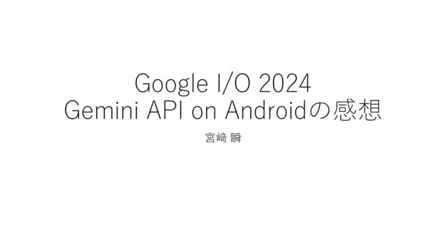 Google I/O 2024 Gemini API on Androidの感想 宮﨑 瞬