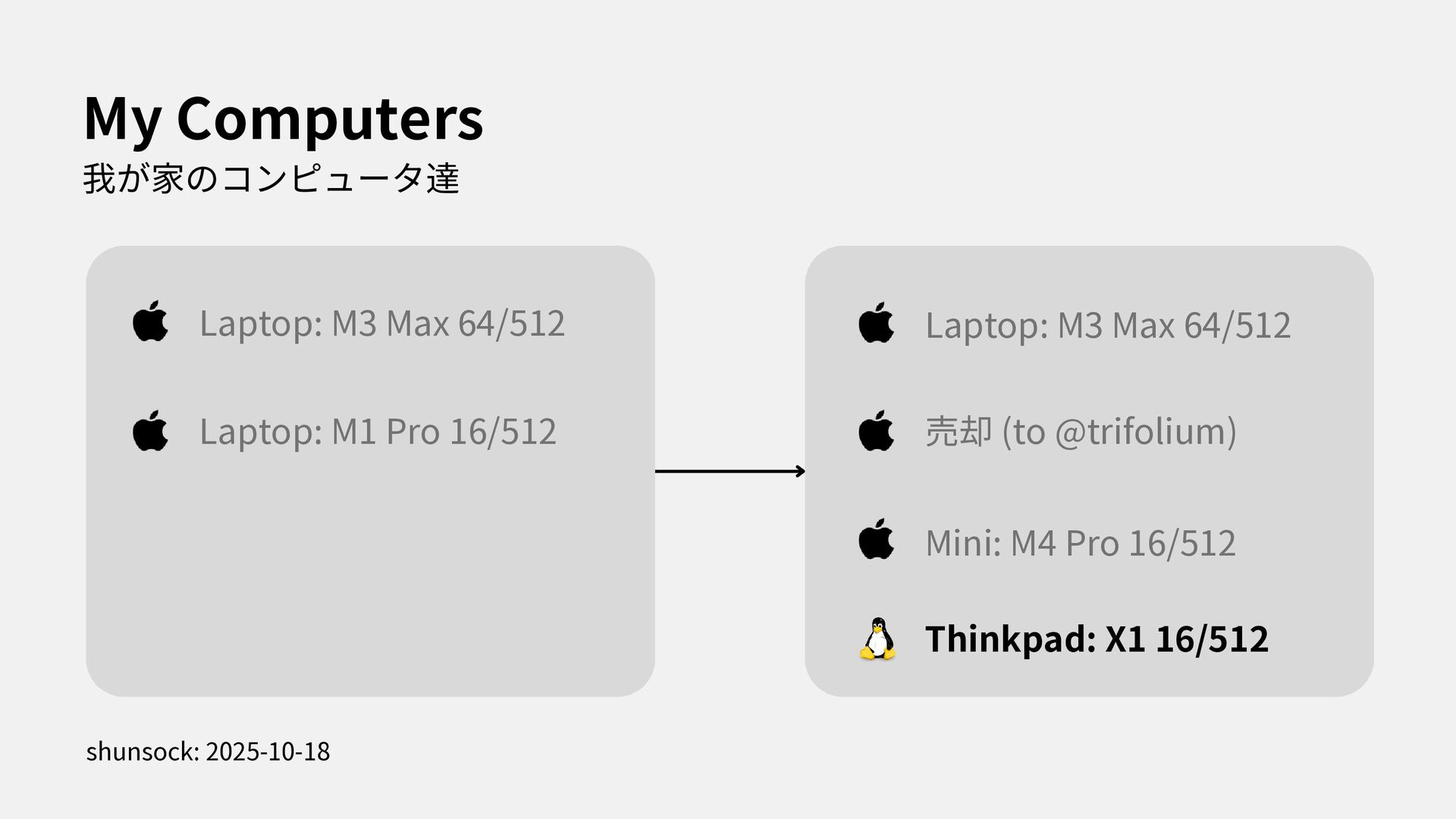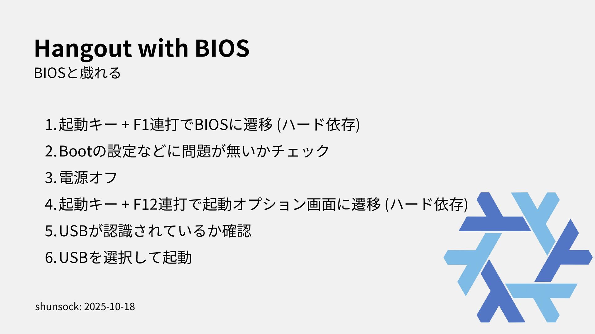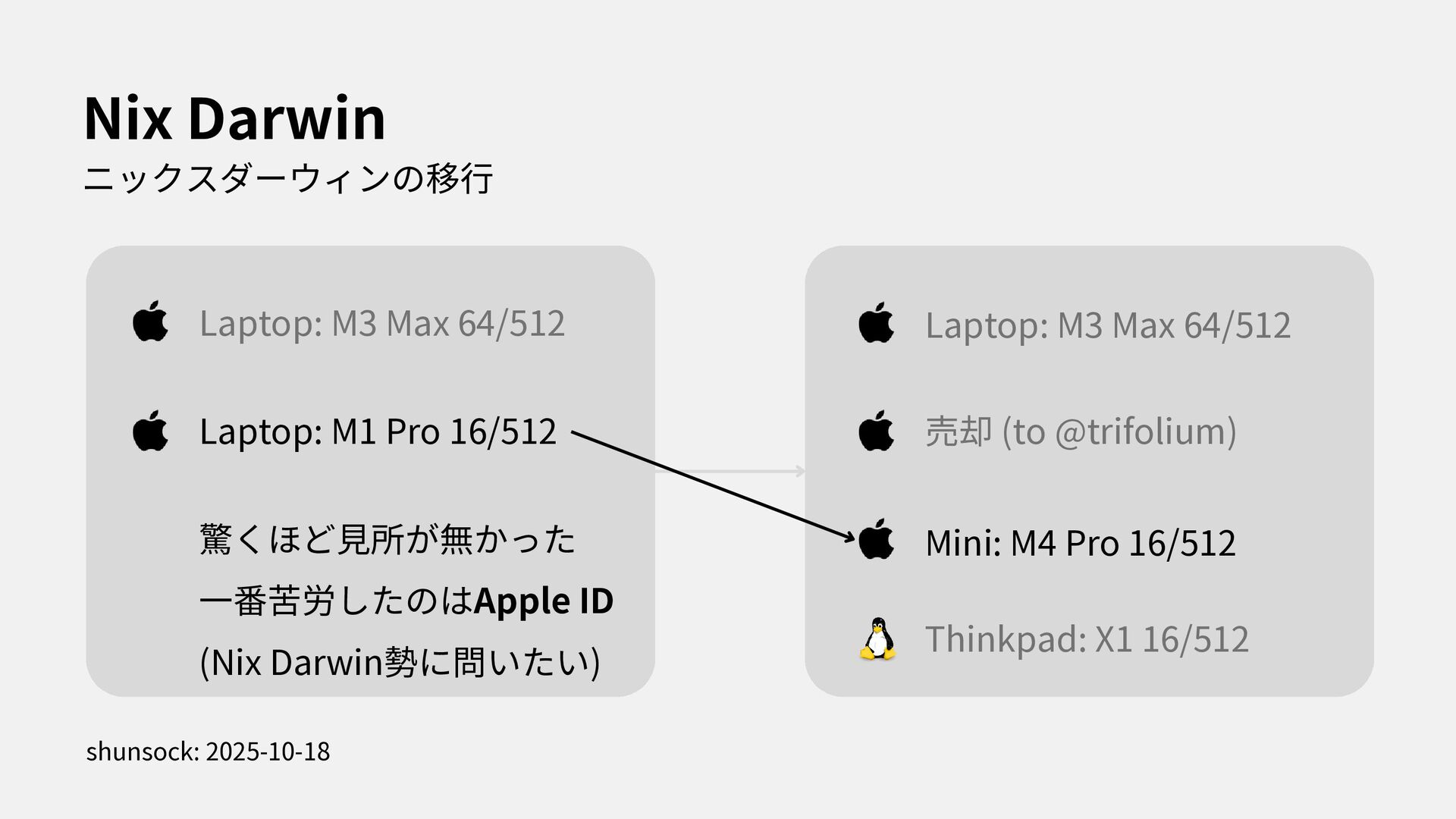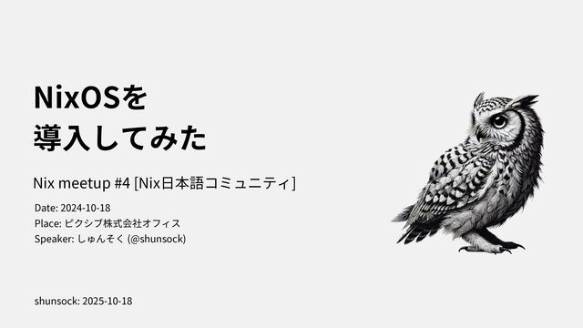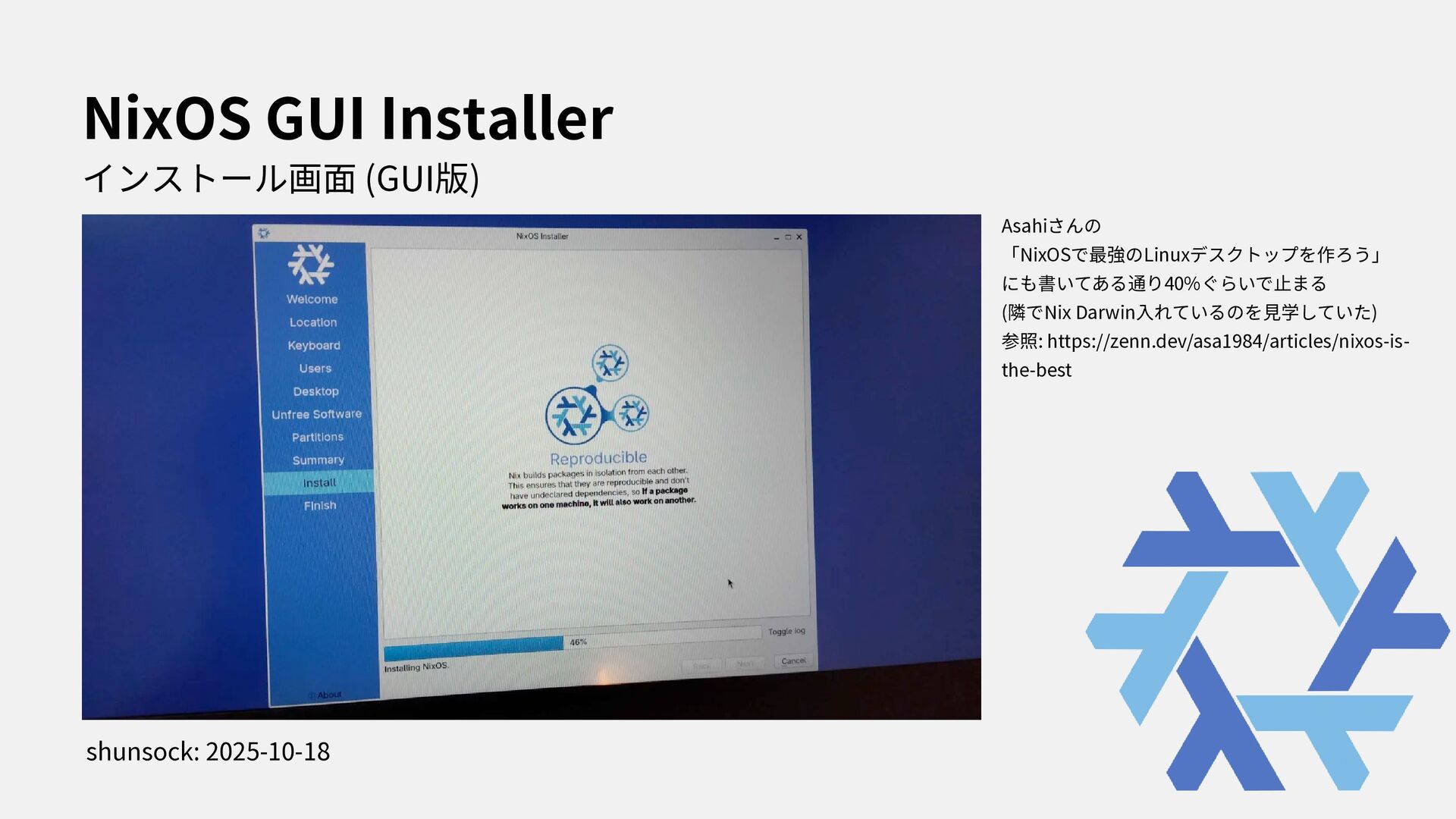I stated to use NixOS with Thinkpad X1. In this presentation, i spoke about how to install NixOS to Thinkpad and my feeling through using my first Linux Laptop.