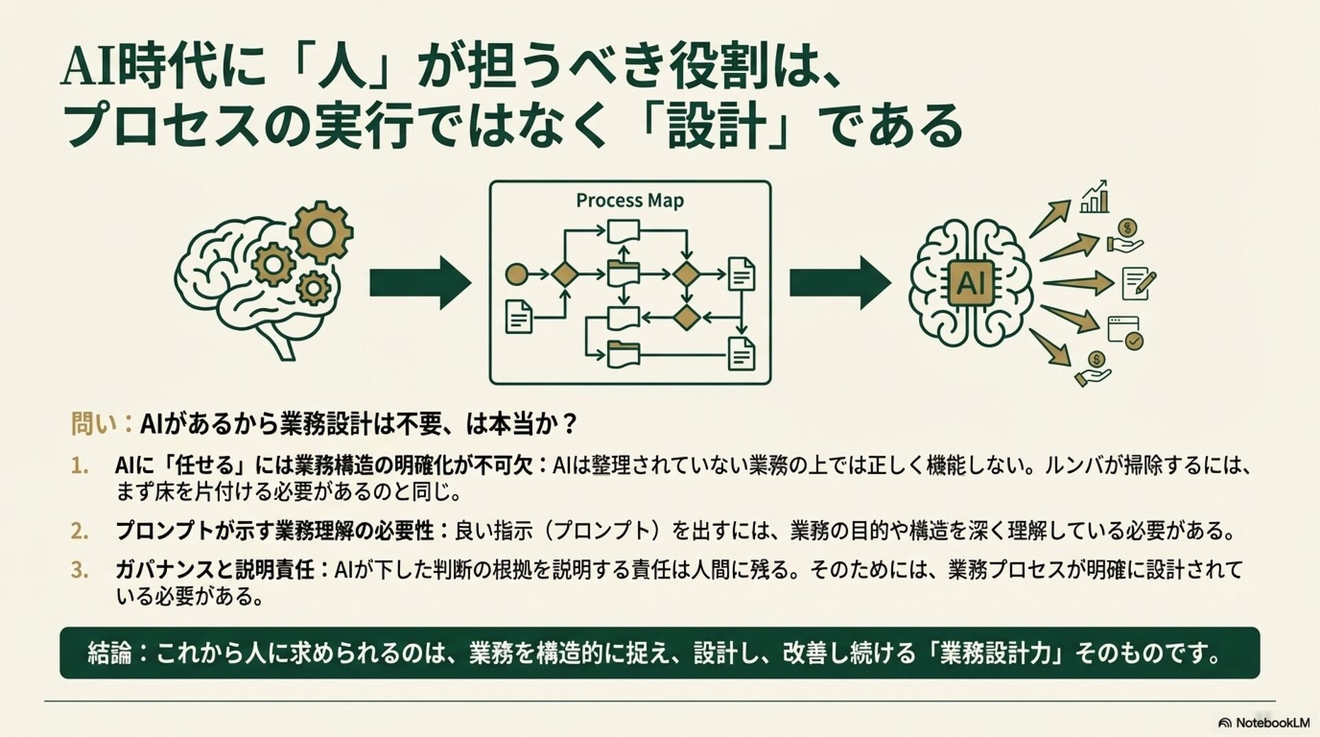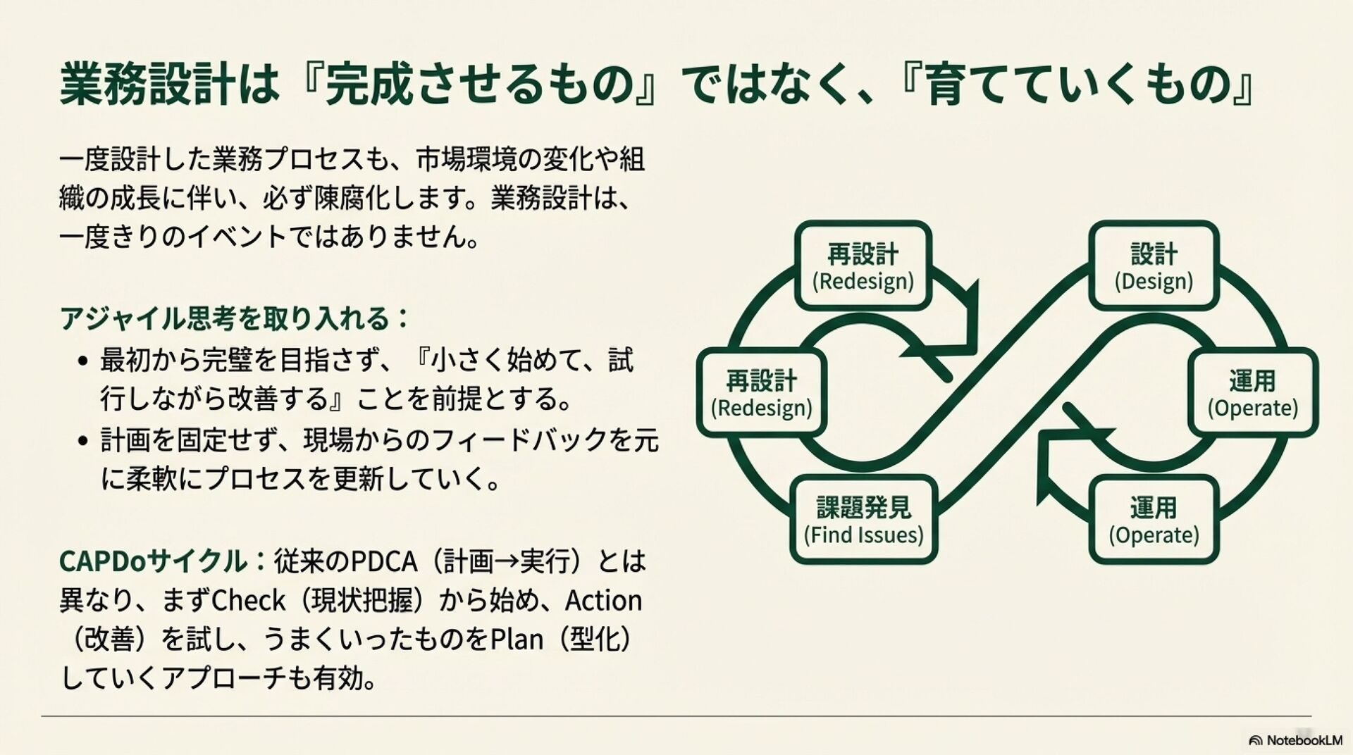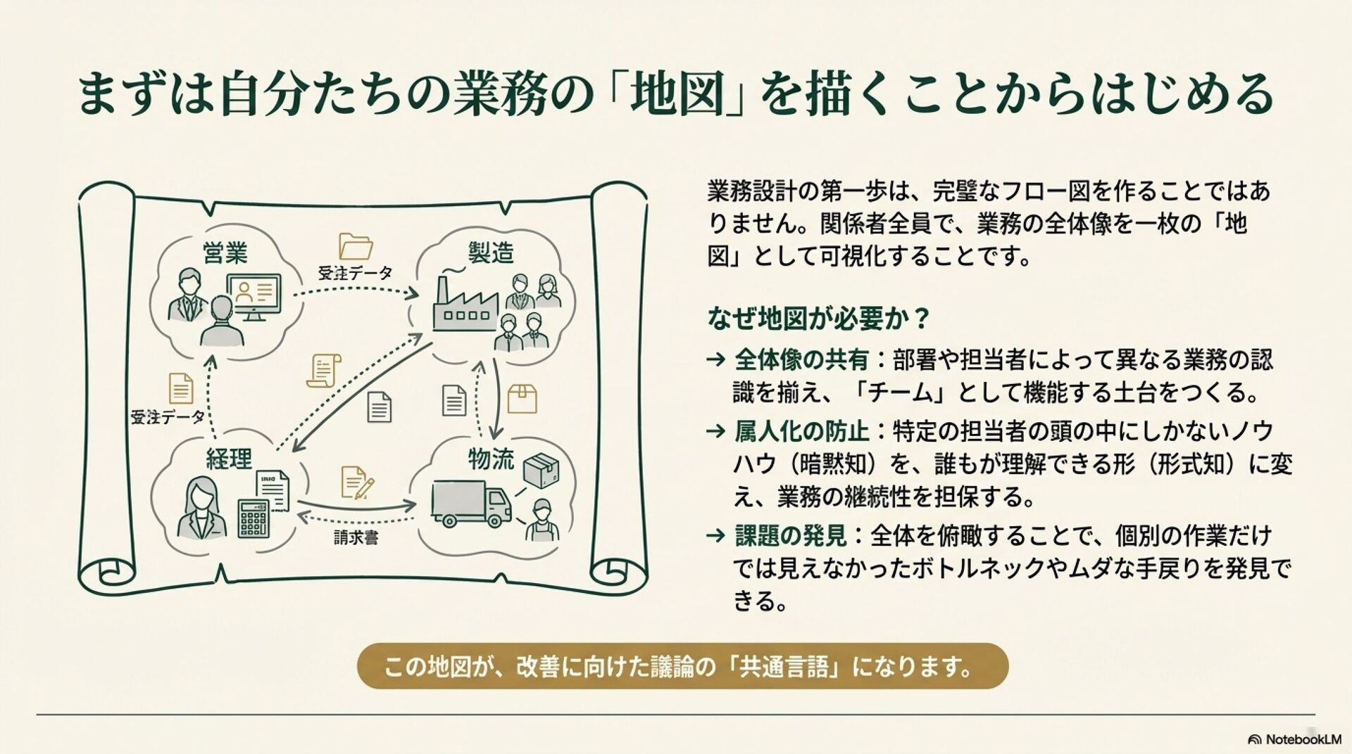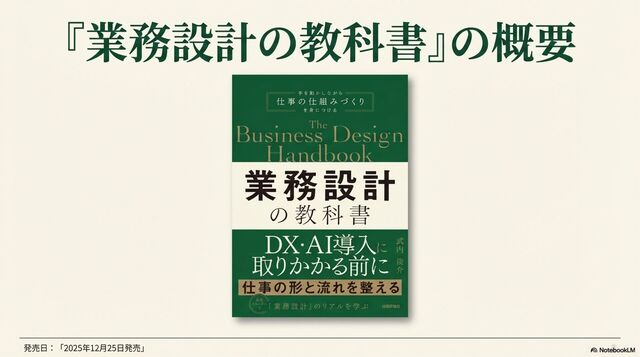 2025年12月25日発売の『業務設計の教科書』の概要をNotebookLMにスライド化してもらったものです。かなりコンパクトにしたものなので、詳細な内容はぜひ『業務設計の教科書』をお手にとってご確認ください。