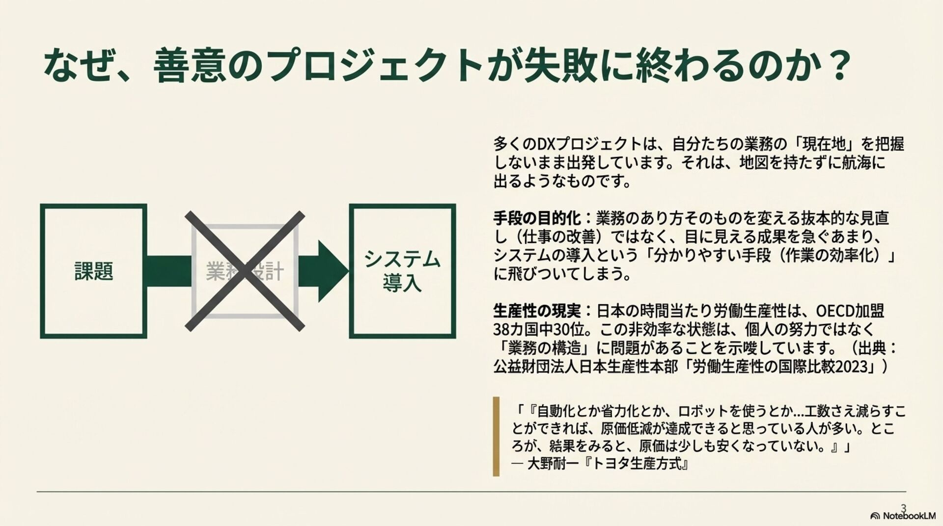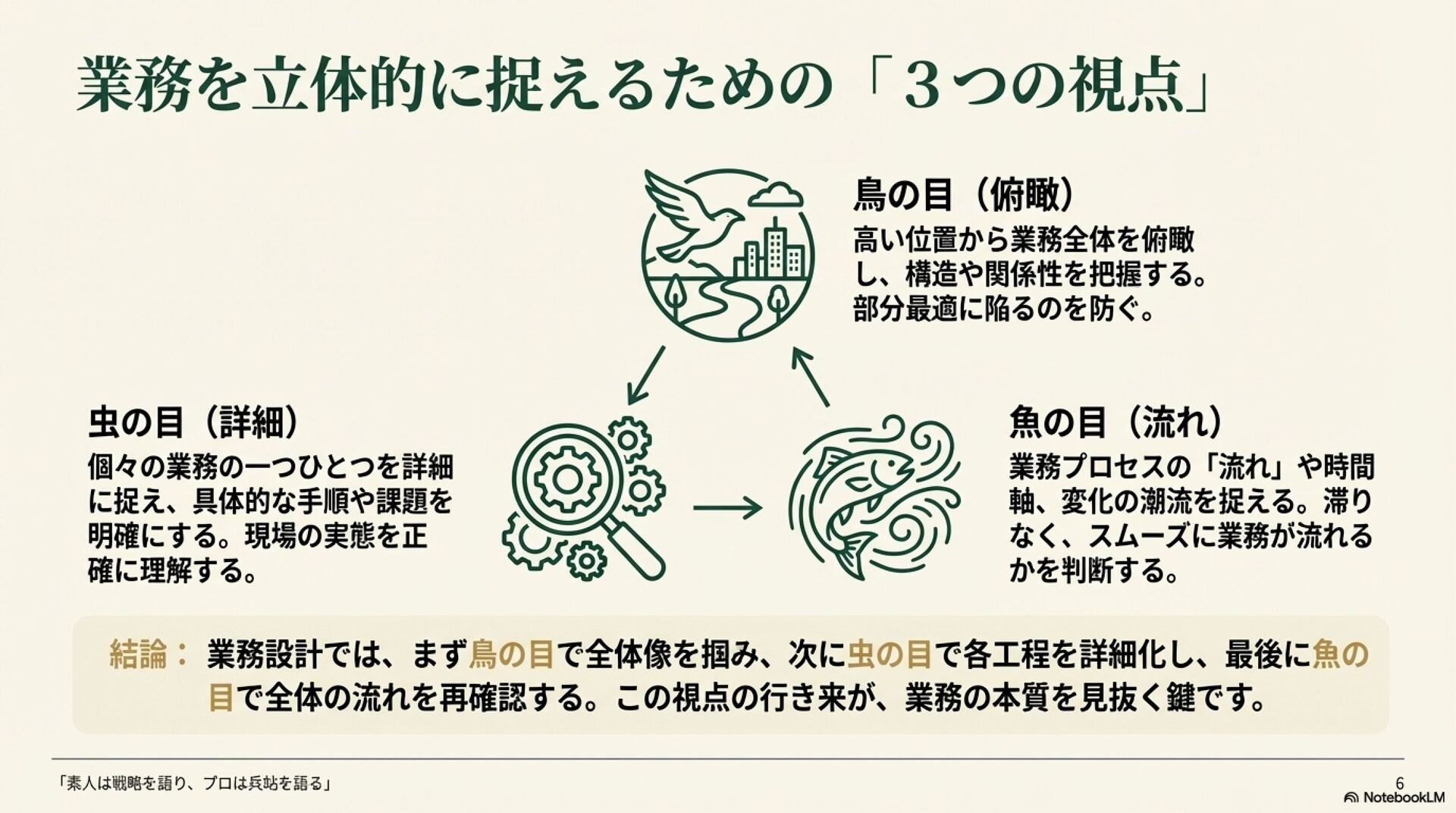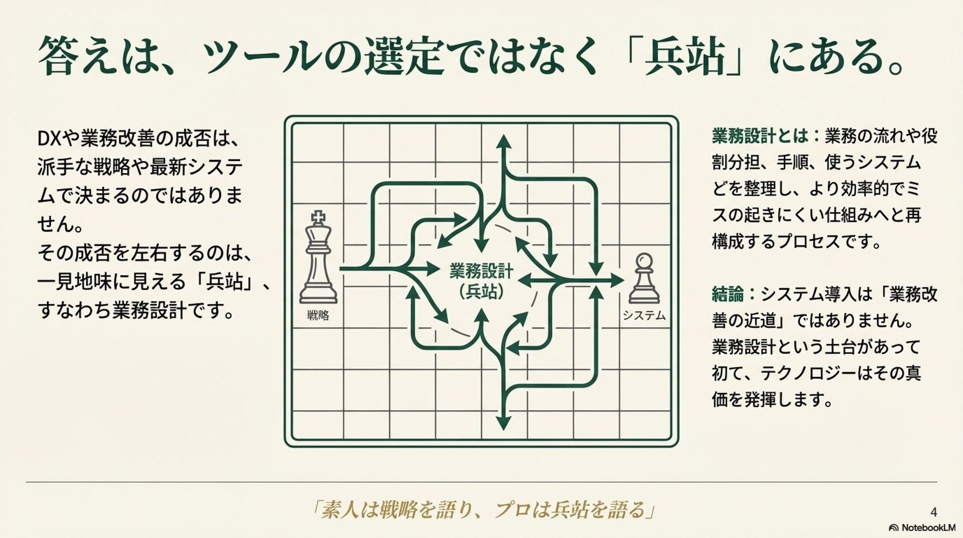 2025年12月25日発売の『業務設計の教科書』の概要をNotebookLMにスライド化してもらったものです。かなりコンパクトにしたものなので、詳細な内容はぜひ『業務設計の教科書』をお手にとってご確認ください。