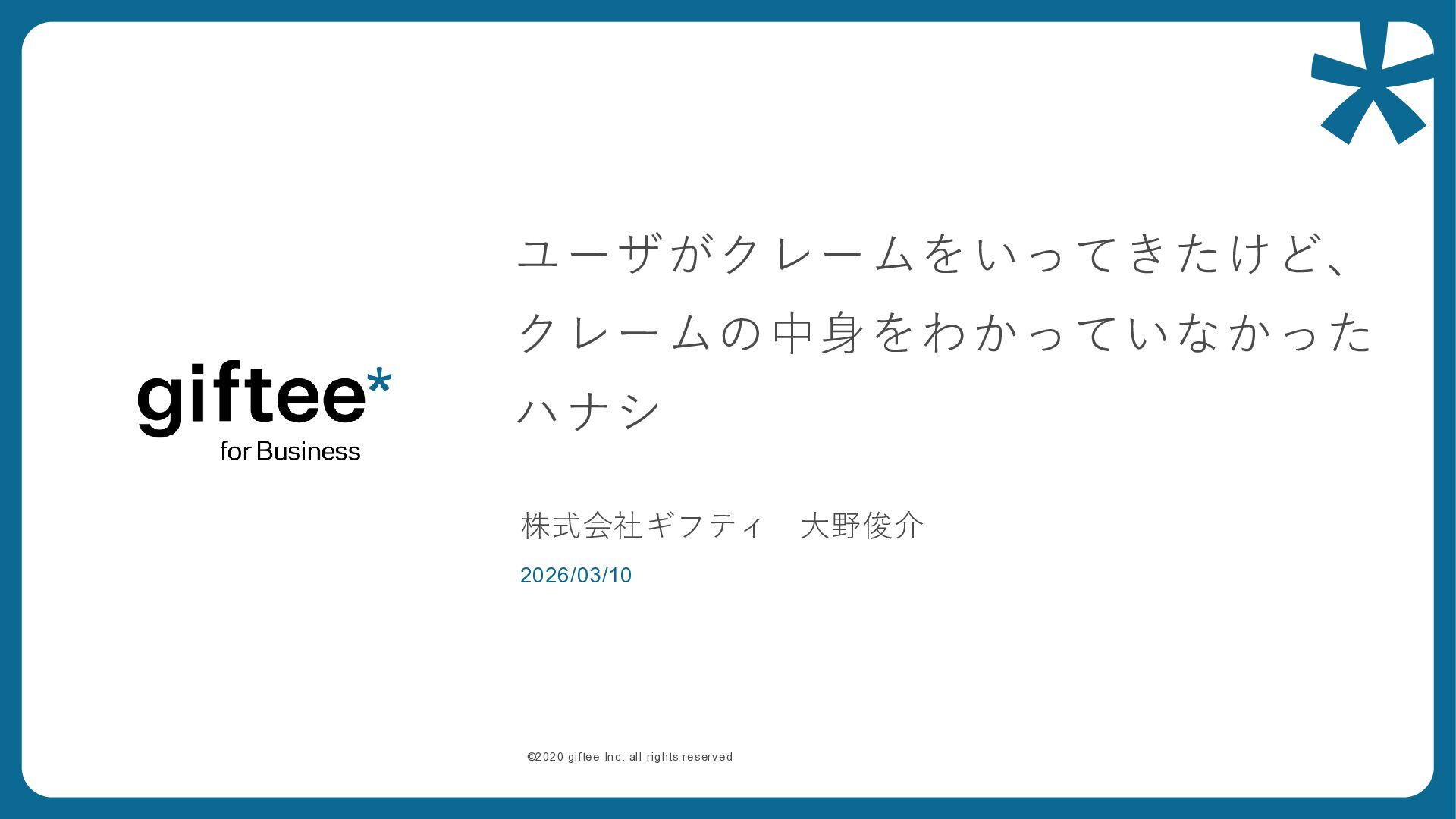 ©2020 giftee Inc. all rights reserved ユーザがクレームをいってきたけど、 クレームの中身をわかっていなかった ハナシ 株式会社ギフティ