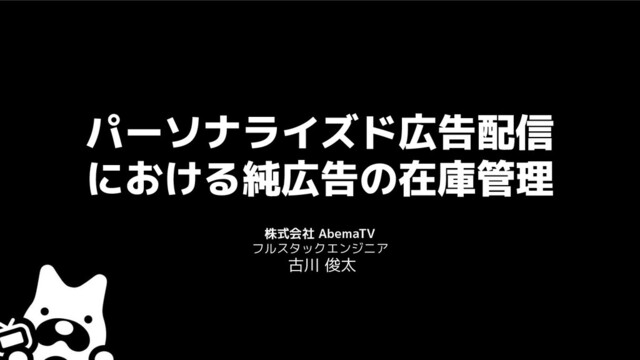 パーソナライズド広告配信 における純広告の在庫管理 株式会社 AbemaTV フルスタックエンジニア 古川 俊太