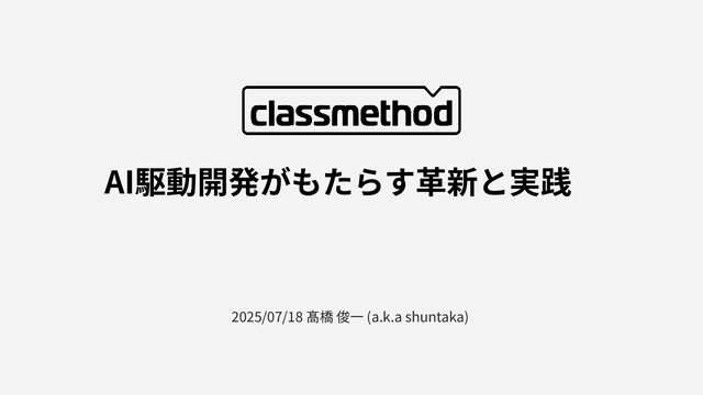 AI駆動開発がもたらす⾰新と実践 2025/07/18 髙橋 俊⼀ (a.k.a shuntaka)