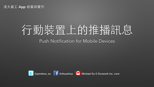 ⾏行動裝置上的推播訊息 Push Notification for Mobile Devices @yenshuo_su @shuoshuo Michael Su