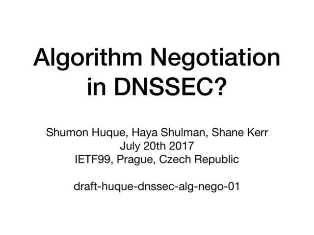 algorithm only? After all DNSSEC fails open (several people to me this week): • Obviously, I lose the benefit of DNSSEC protection for a lot of the resolver population • Furthermore, if I have DANE applications critically dependent on DNSSEC authentication, then this is an unacceptable security risk: • DANE applications can’t really afford to fail open, unless they are entirely opportunistic or optional, so they will be even more dissuaded from new DNSSEC algorithm adoption