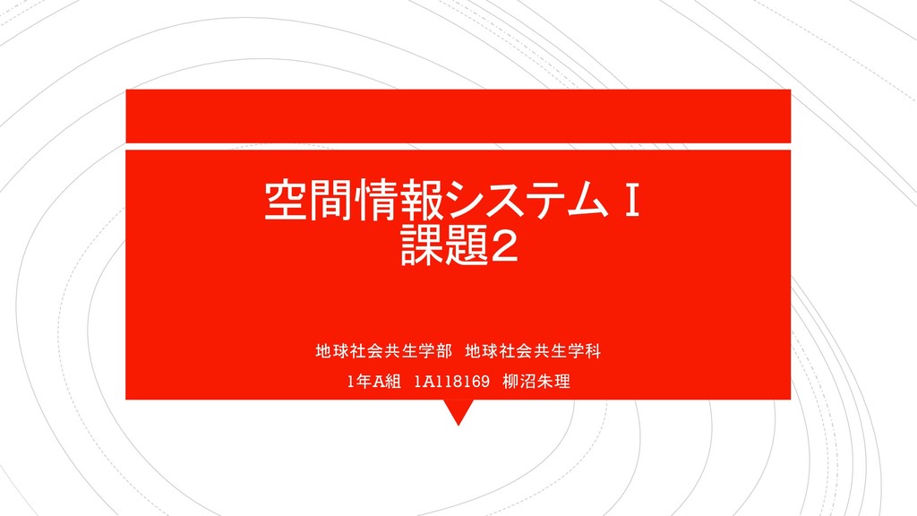 空間情報システムⅠ 課題2 地球社会共生学部 地球社会共生学科 1年A組 1A118169 柳沼朱理