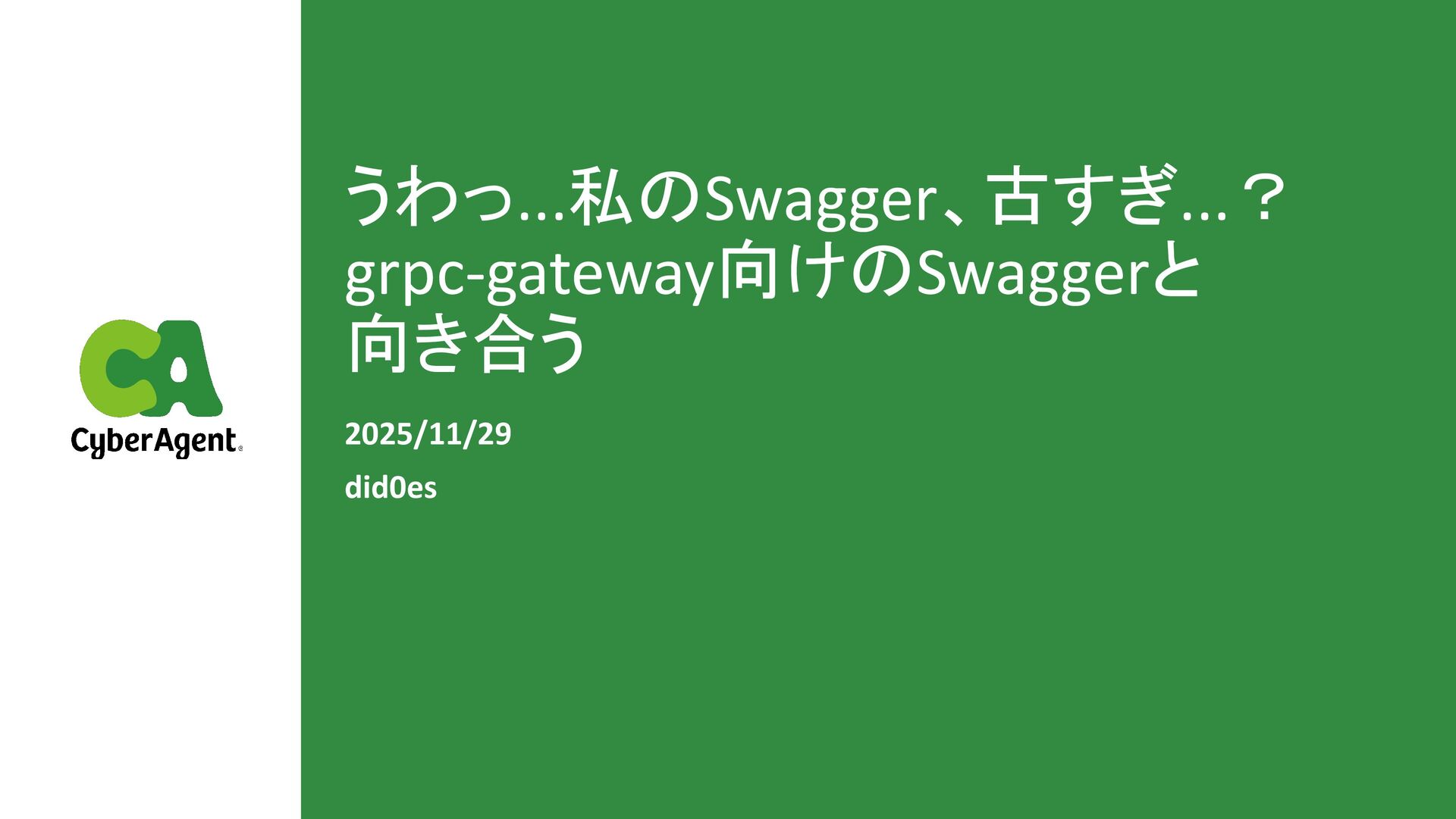 うわっ...私のSwagger、古すぎ...? grpc-gateway向けのSwaggerと 向き合う 2025/11/29 did0es